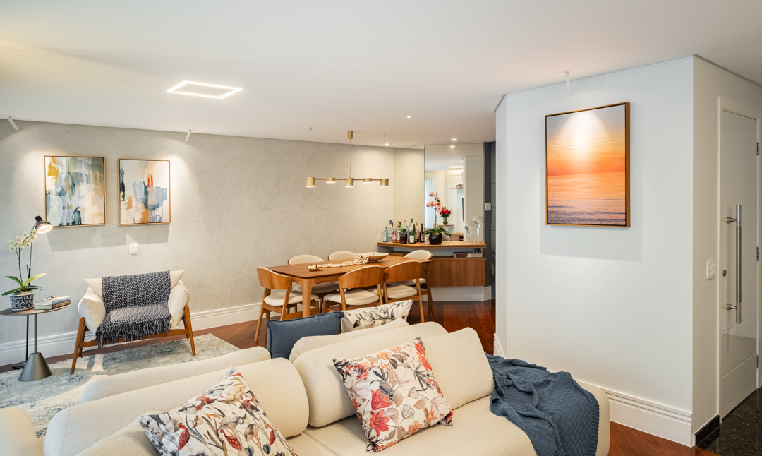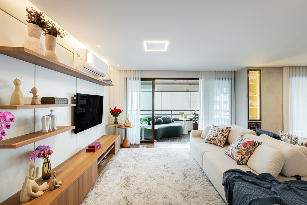 O Apê Villagio é um apartamento de 176m² onde aqui fizemos reforma de toda área social. Aqui o nosso foco foi resgatar identidade e criar conexão em um lar que mantinha a mesma estética há anos. Com a chegada da nova integrante da família, nasceu também o desejo de transformar o dia a dia em algo mais aconchegante, funcional e cheio de significado.