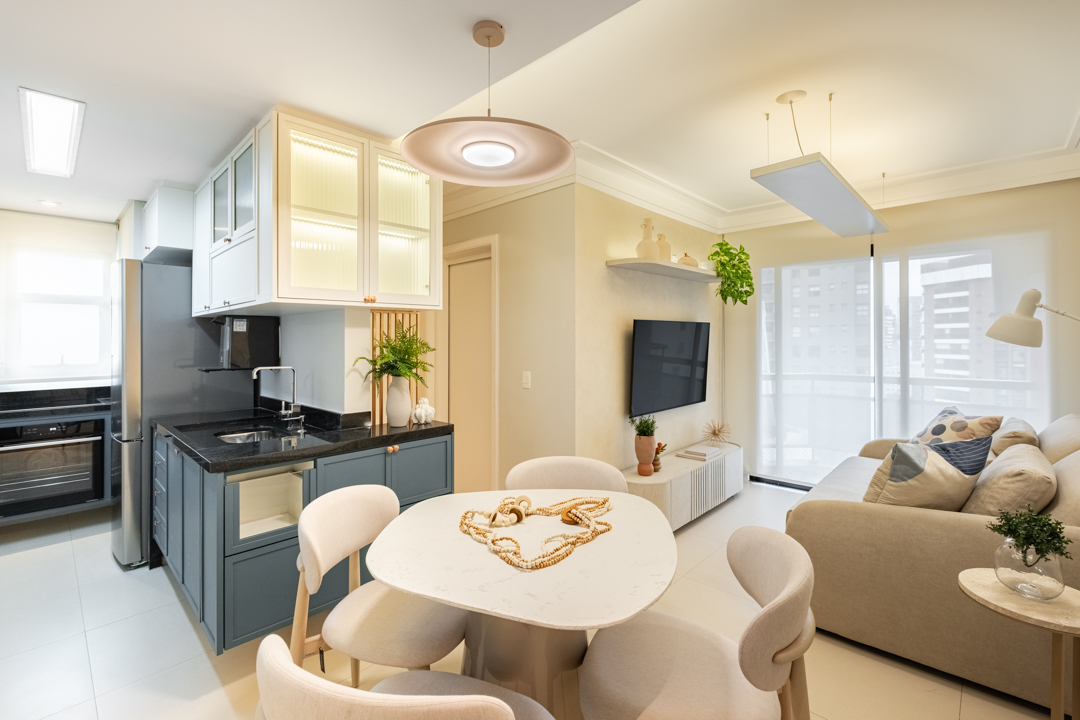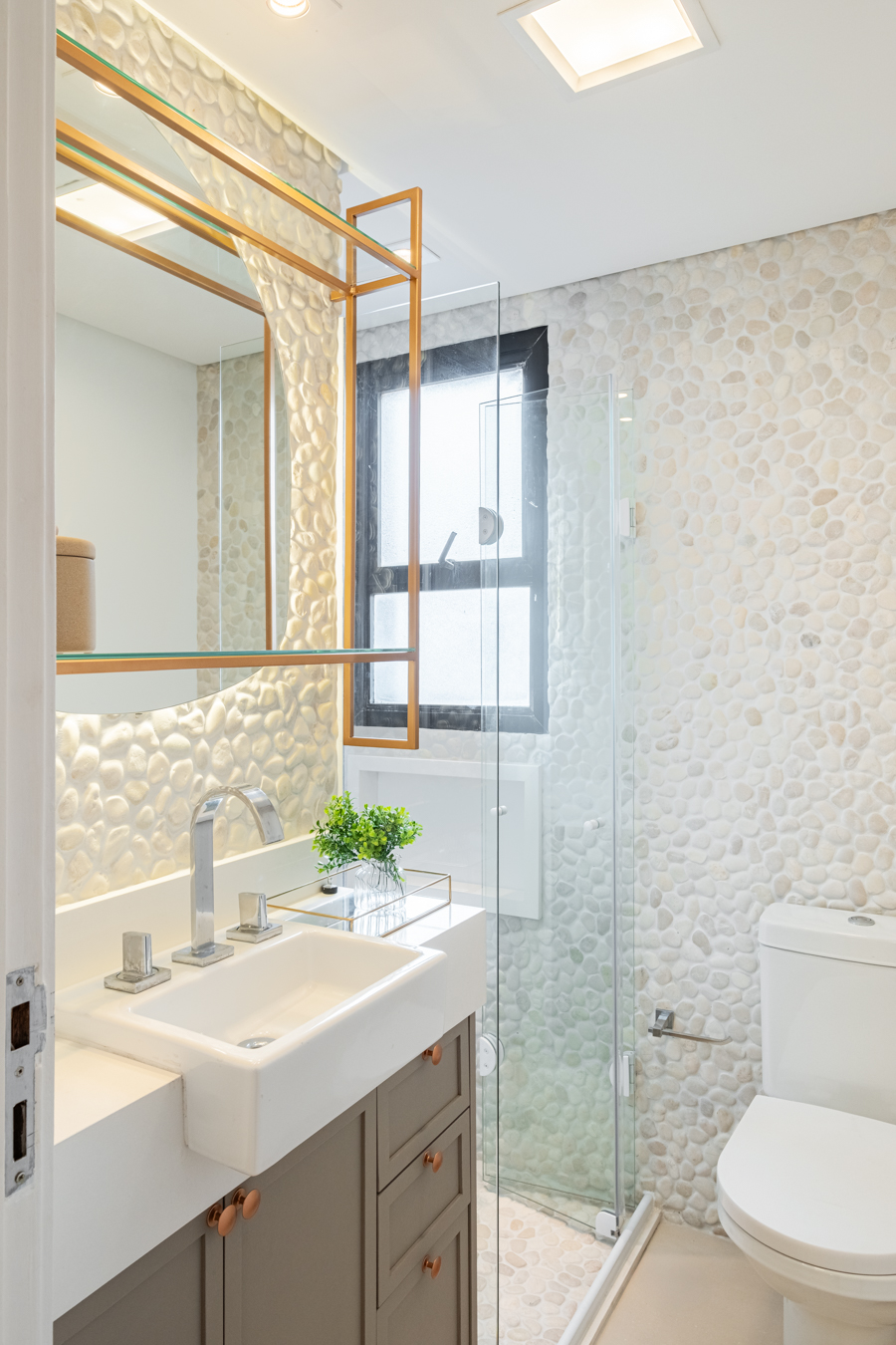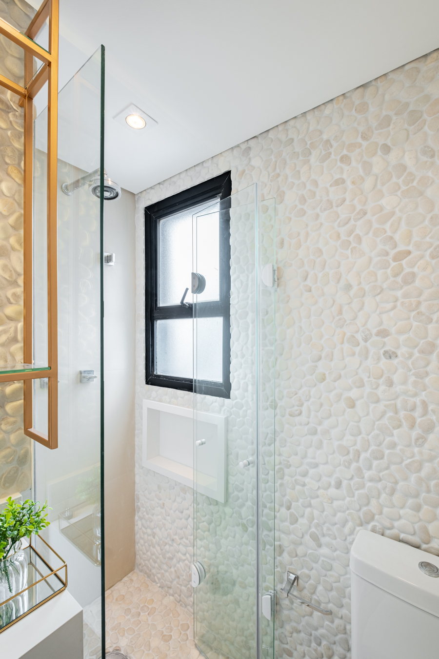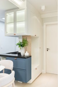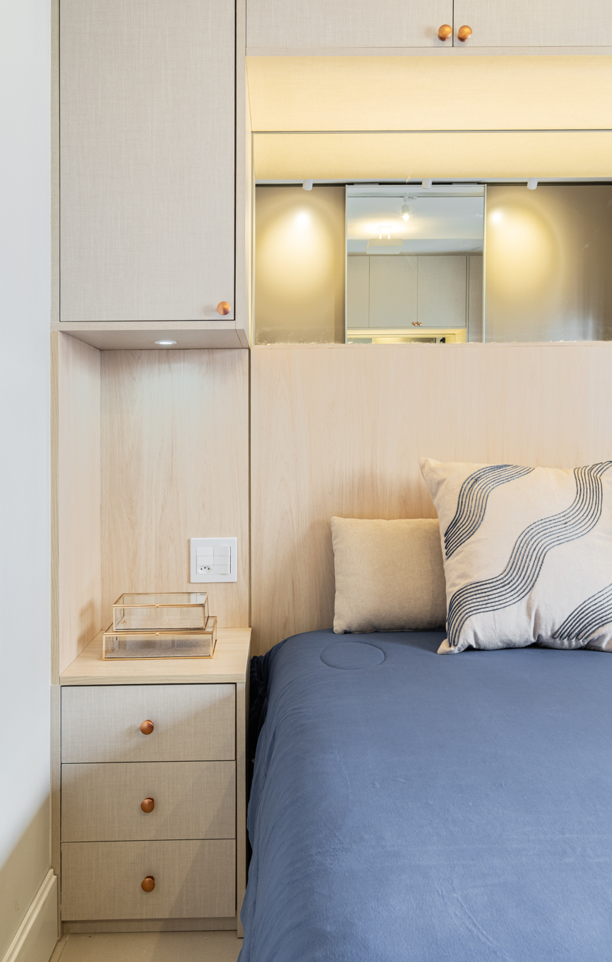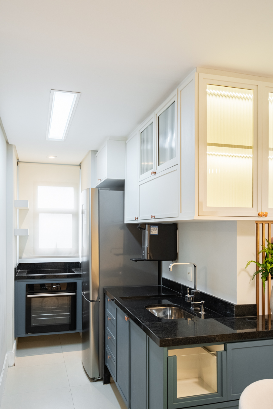 Neste studio de 33m², desenvolvemos um projeto clássico, funcional e atemporal, equilibrado pela estética clean desejada pela cliente. O banheiro foi totalmente reformado, enquanto os demais ambientes foram transformados por meio de marcenaria, mobiliário solto e decoração cuidadosamente selecionados.